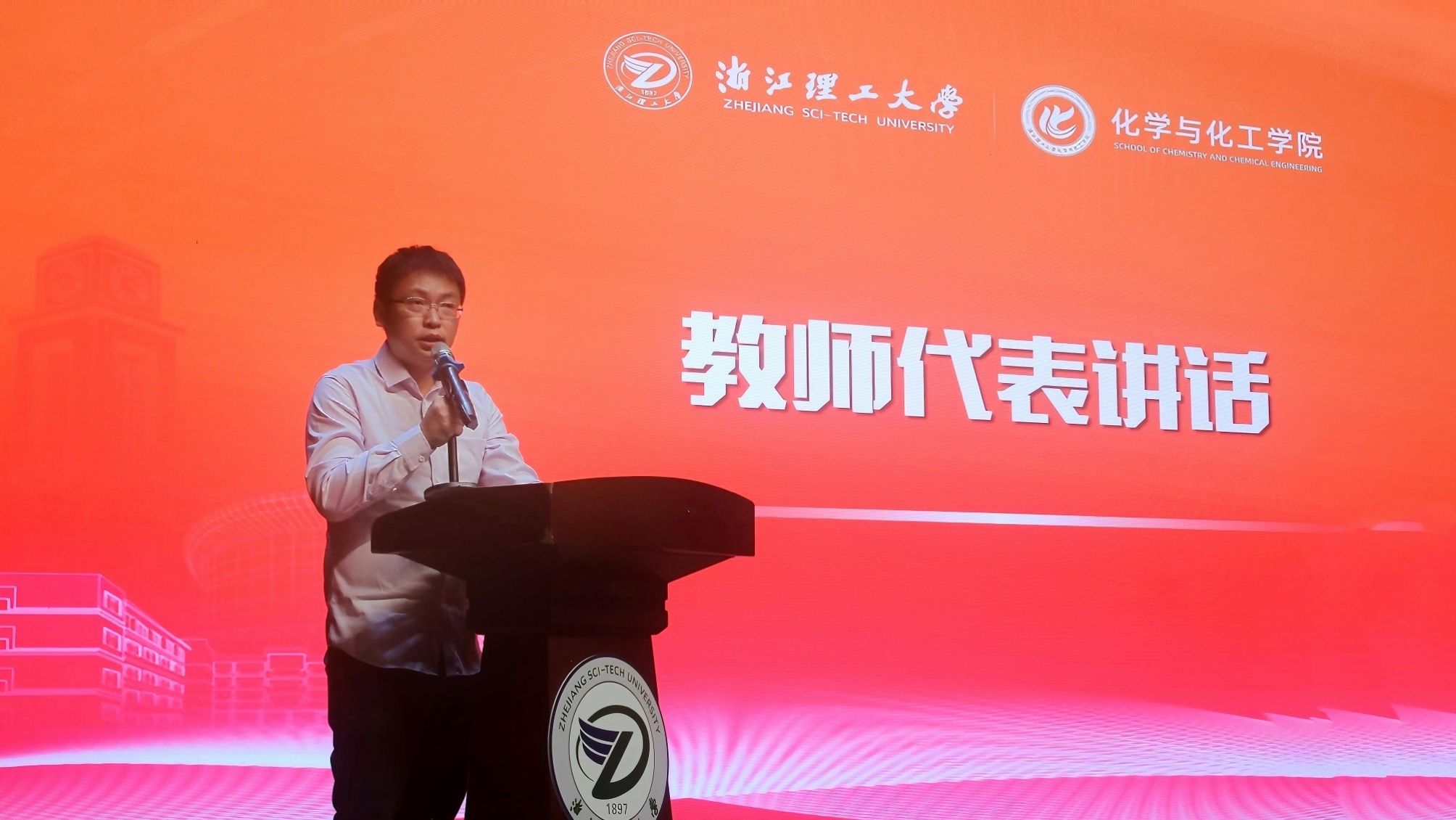 经师易求,人师难得。缪茂众代表学院全体教师对新同学的到来表示最热烈、最诚挚的欢迎。他为同学们送上几点殷切嘱托:一是希望同学们把“书包”背进图书馆,把“双手”伸进实验室。第二希望同学们要把老师当成“宝藏”,而不是“考官”,第三希望大家要把同学当成“战友”,而不是对手。希望新生们在化院努力求学,更在今后的人生道路上担大任。