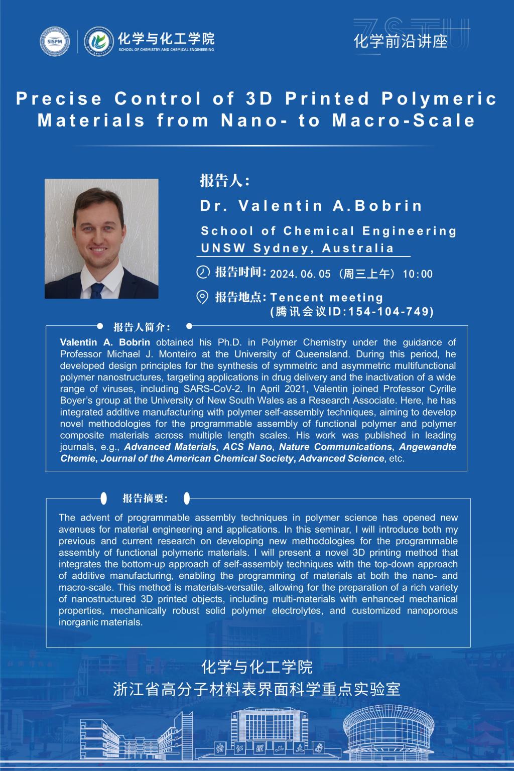 【学术讲座】Precise Control of 3D Printed Polymeric Materials from Nano- to Macro-Scale