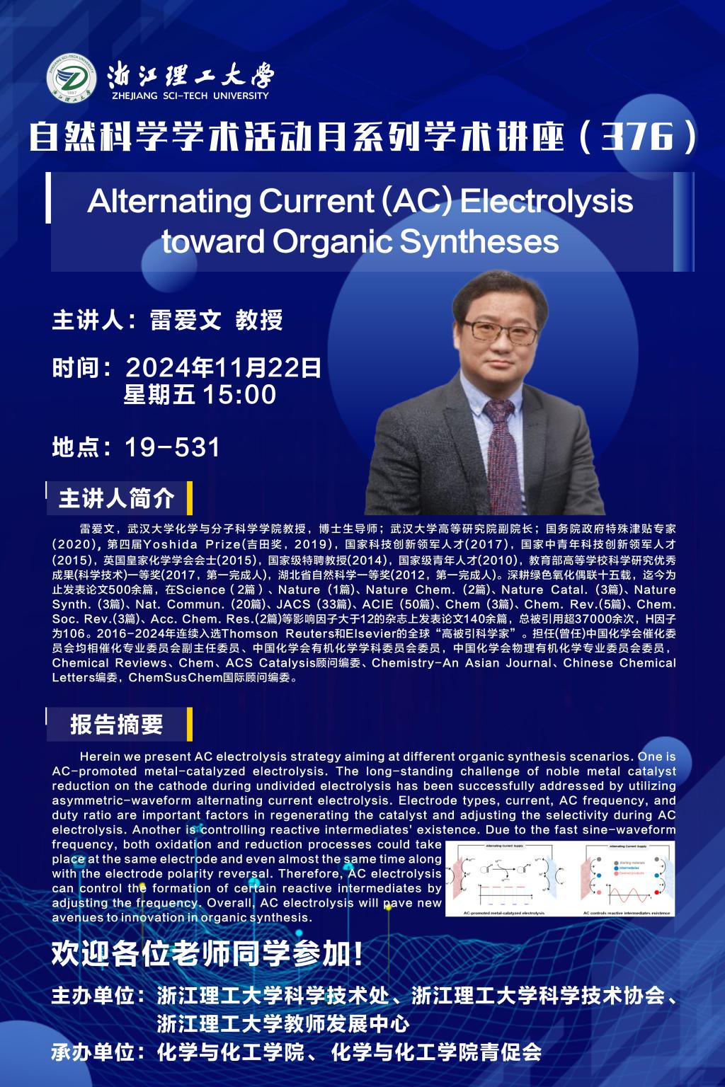 【学术讲座】Alternating Current (AC) Electrolysis toward Organic Syntheses