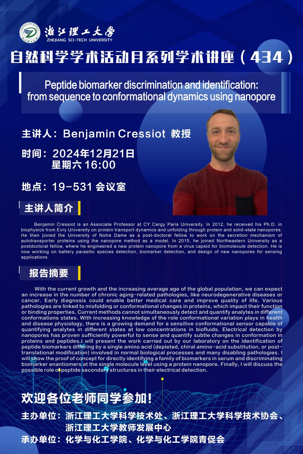 【学术讲座】Peptide biomarker discrimination and identification: from sequence to conformational dynamics using nanopore